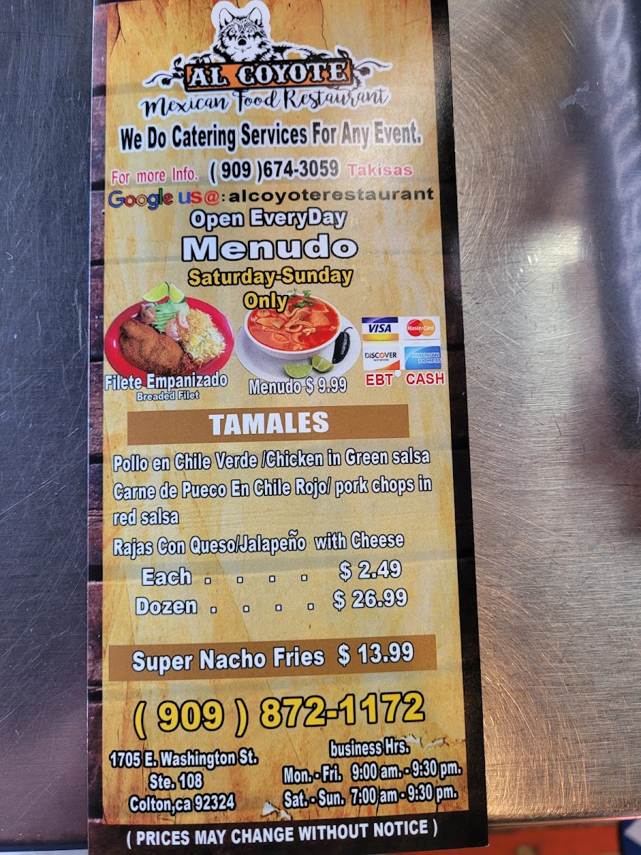 Welcome to Al Coyote, a hidden gem nestled in Colton, CA, where authentic Mexican cuisine steals the spotlight. Their menu offers a delightful array of traditional dishes that are sure to please any palate.